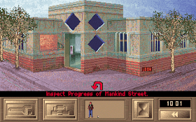 Side note: I’ve mentioned the backtrack function numerous times, and sometimes it won’t let you backtrack far enough that you can undo whatever it was you did to dead-end yourself, but here it’s actually a bit too “forgiving”. Even though I regain control outside the building before I go in, if I screw up while talking to Litvinov, I'll backtrack, all the way back to Department 7, before Agabekov leaves.