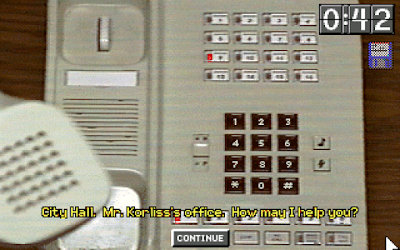 I call the redoubtable Joe Spanozi and ask him to look into Korliss, Judge Hughson, and Mrs. Hoskins. Shortly after hanging up, Victor’s secretary calls and informs him that attorney Brackman wants Victor in his office RIGHT AWAY (that’s the game’s capitalization, not mine).