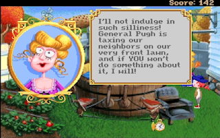 Moving on...my objectives for the third act are to get the ingredients for the kite/key experiment (as listed in the manual), distribute poor Richard's proverbs (this will become clear later on), and get Ben Franklin to do the Kite/Key experiment. There will be no sequence featuring Lockjaw and the third act almost made me request your assistance. That's right, in a game targeted at children. Is that "Sierra hard" for ya? Or do you have to think like a child to be successful? Or (cue sad music) am I not half the adventure gamer I thought I was?